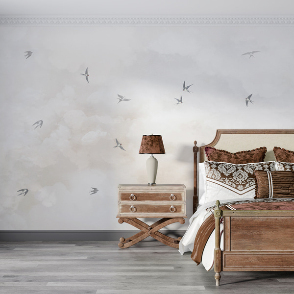 Boho bliss: a serene landscape of mountains, trees, and sun