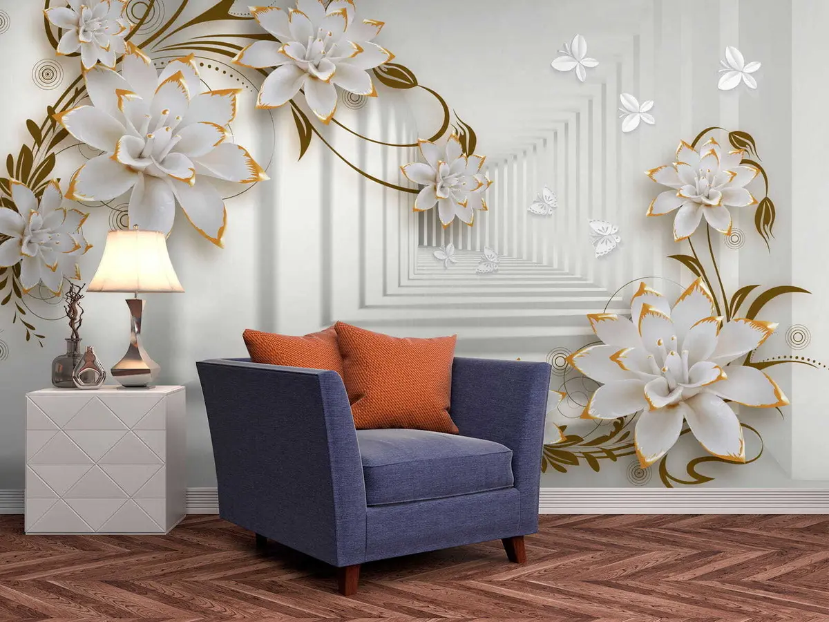 Flowers and butterflies in a light tunnel - Wall mural (No. u47046)