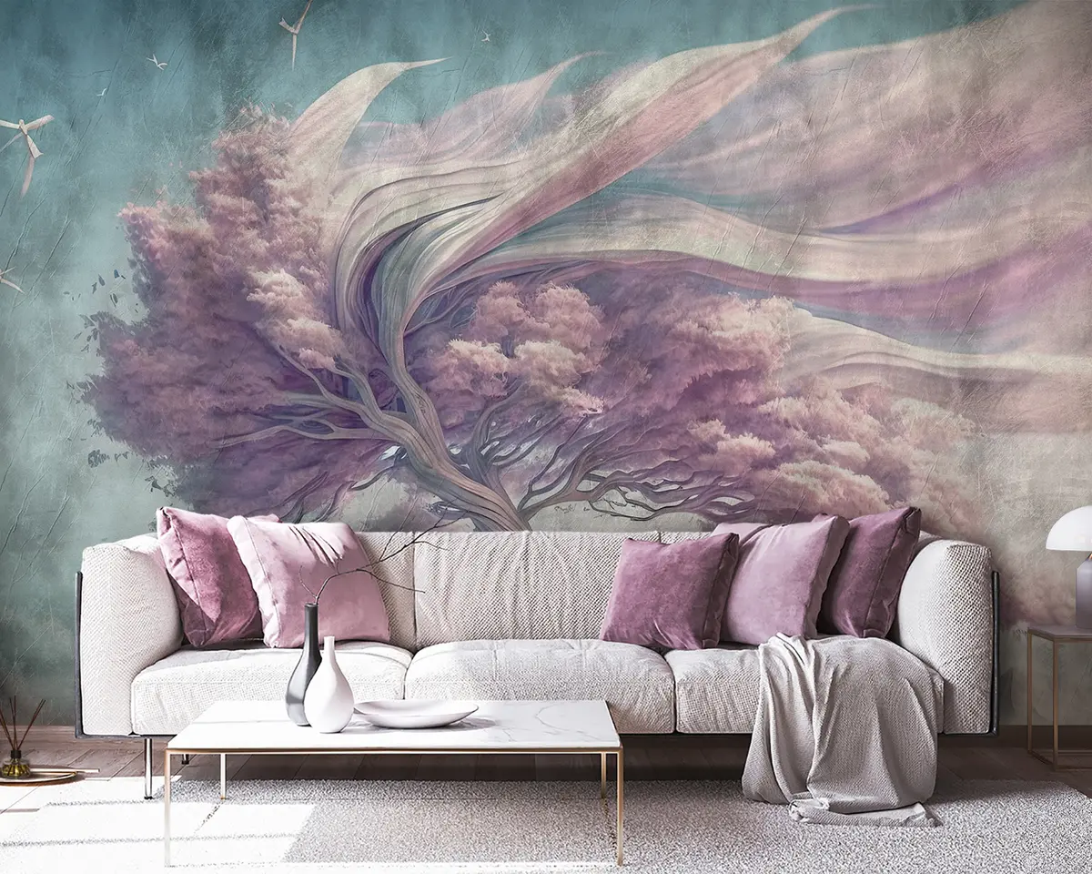 Wood on the background of the mountains - Wall mural (No. u93931)