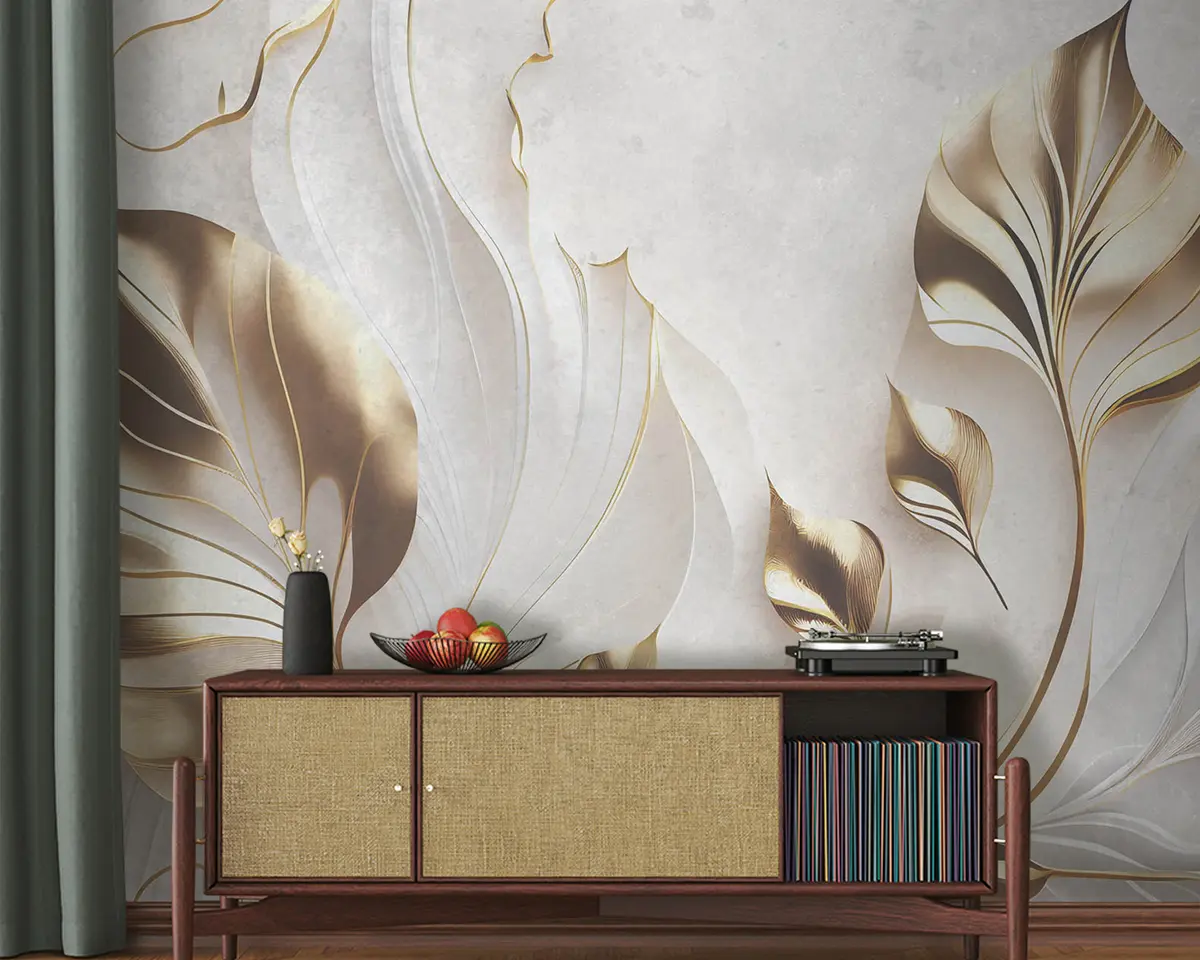 Delicate leaves on a concrete wall - Wall mural (No. u94010)