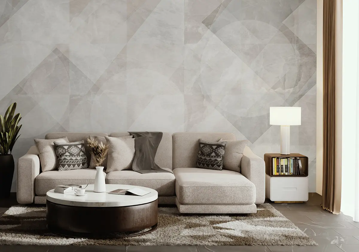 Geometric abstraction on a marble background in pastel colors - Wall mural (No. u97269)