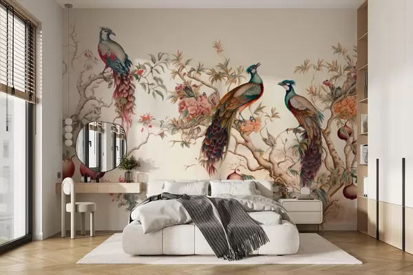 Birds on the branches of a pomegranate - Wall mural (No. u95667)
