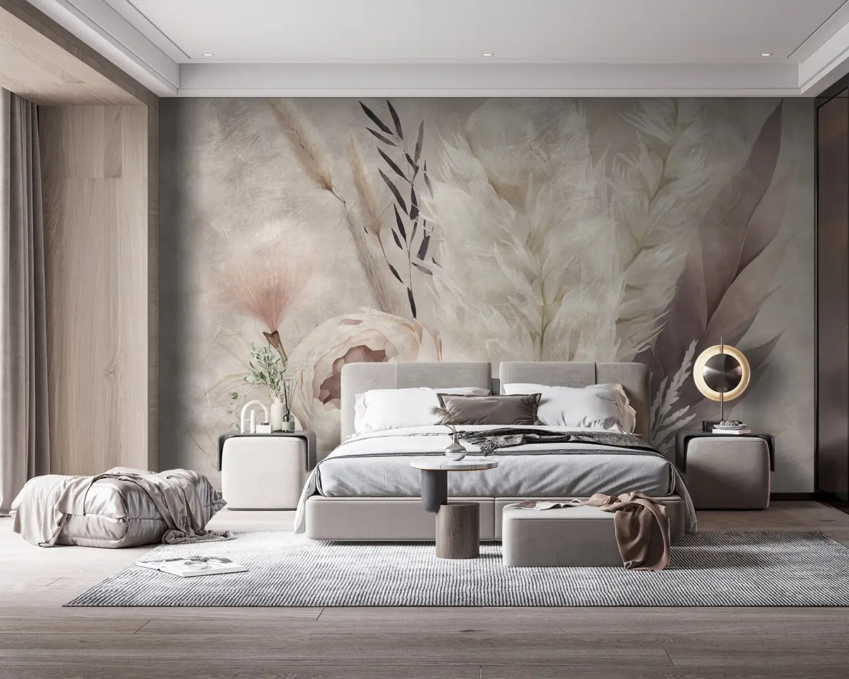 Composition of feathers and flowers - Wall mural (No. u95403)