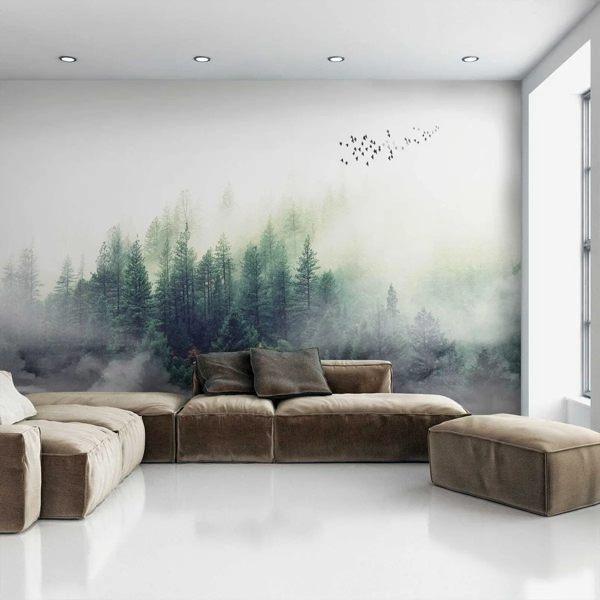 Forest and birds in fog - Wall mural (No. u10882)