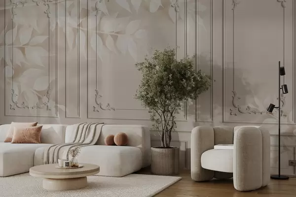 Classic English Boiserie panels with leaves - Wall mural (No. u96165)