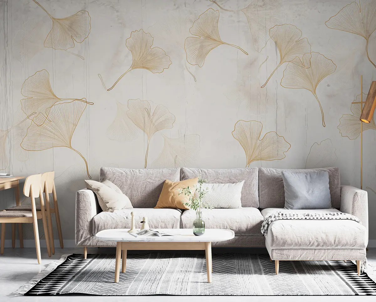 Ginkgo leaves in beige tones - Wall mural (No. u96467)