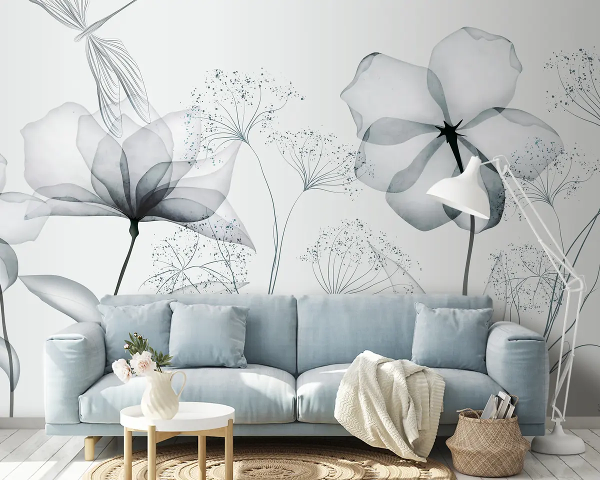 Flowers and plants in a watercolor style - Wall mural (No. u94319)