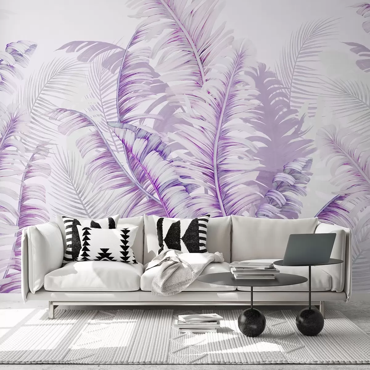 tropical leaves in purple colors - Wall mural (No. u94469v2)