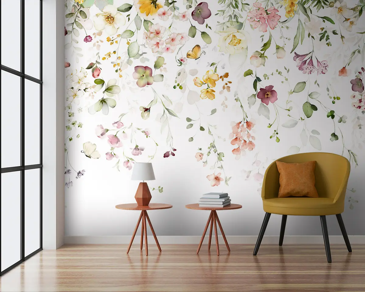 Watercolor compositions with garden flowers - Wall mural (No. u95507)