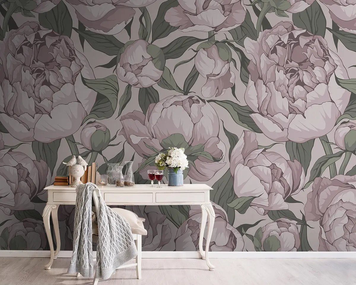 Blooming peonies in pastel colors - Wall mural (No. u95849)