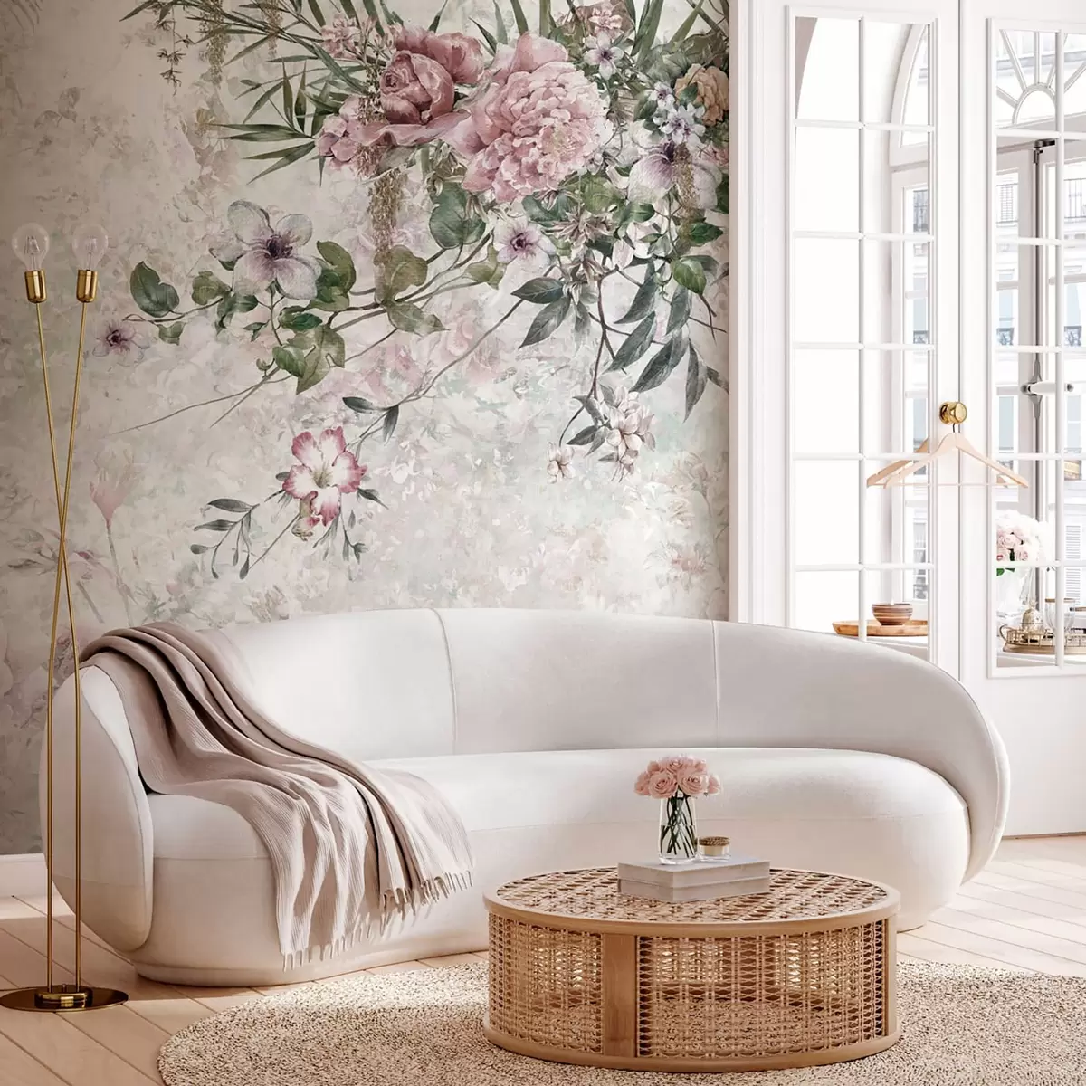 Vintage flowers on a marmur wall - Wall mural (No. u97046)
