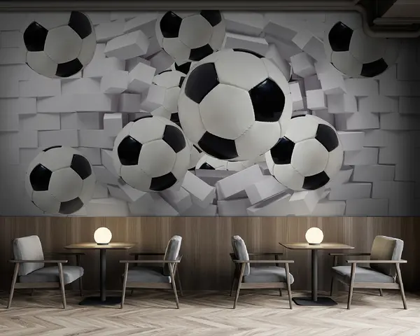 Soccer balls on the background of a brick wall - Wall mural (No. u94958)