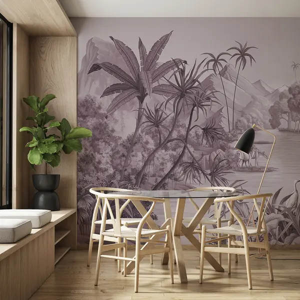 Black and white tropics in purple colors - Wall mural (No. u59040v3)
