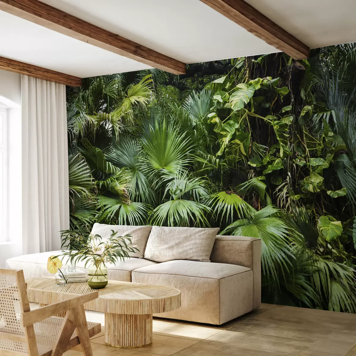 Wet leaves in the jungle - Wall mural (No. u93616)