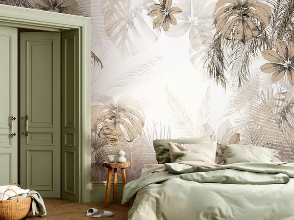Tropical trees and leaves in the forest on a white background - Wall mural (No. u96472)