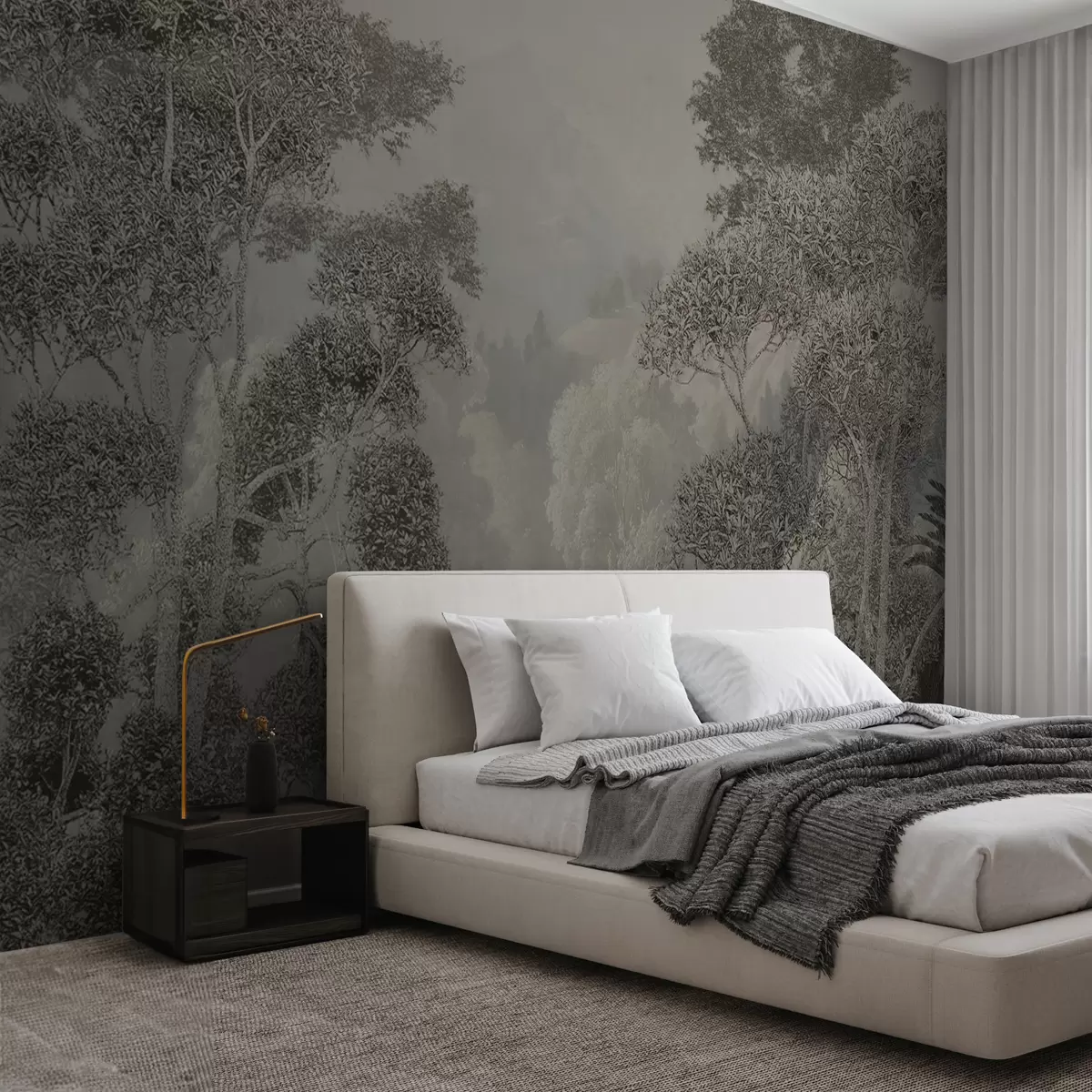 Tropical forest in gray tones - Wall mural (No. u97396)