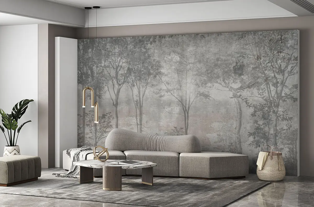 A painting of a forest on a stone wall - Wall mural (No. u97401)