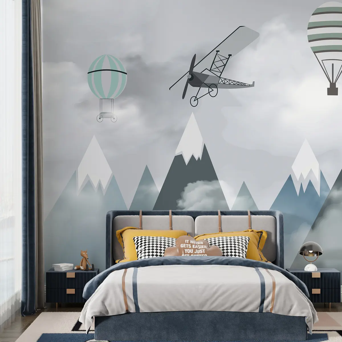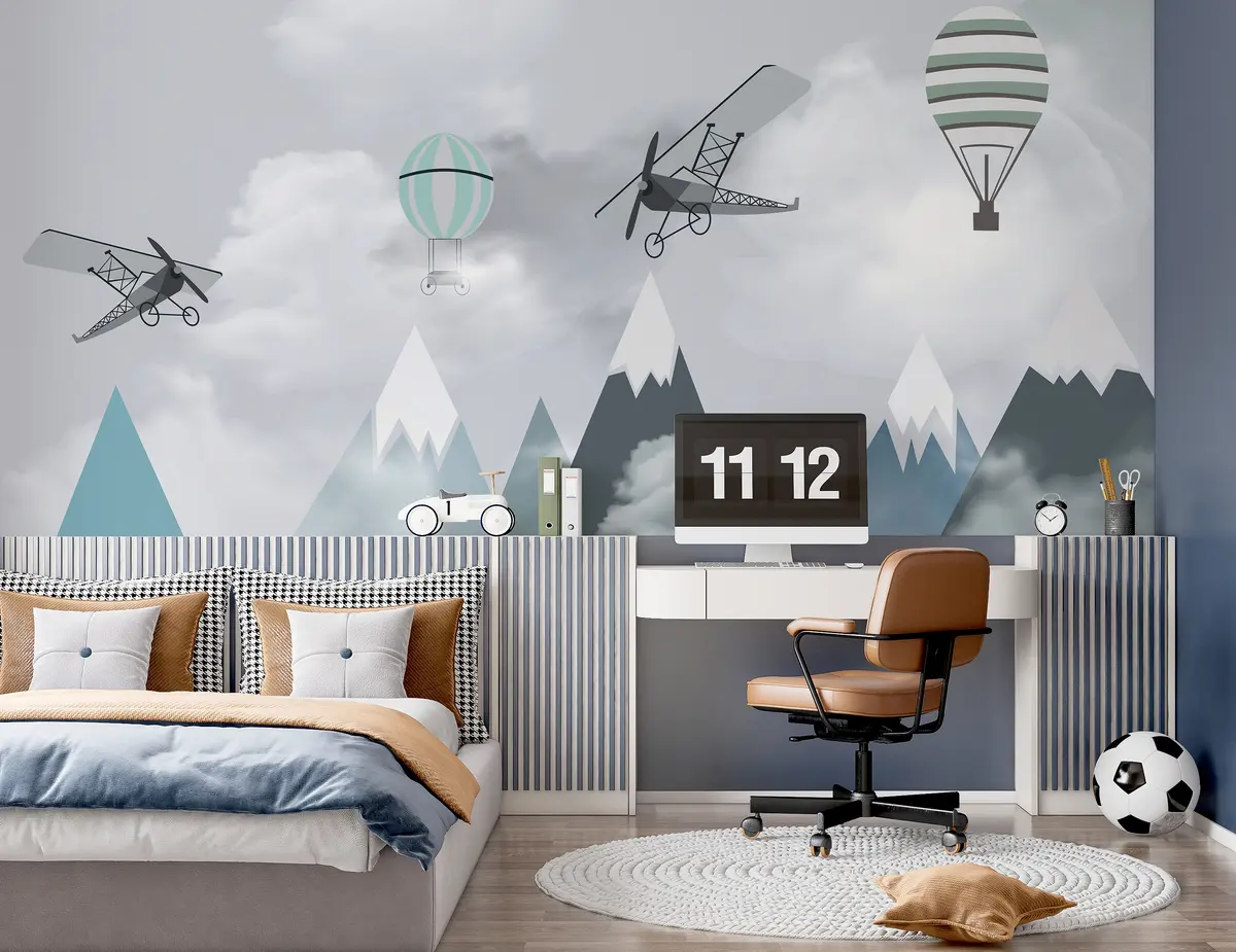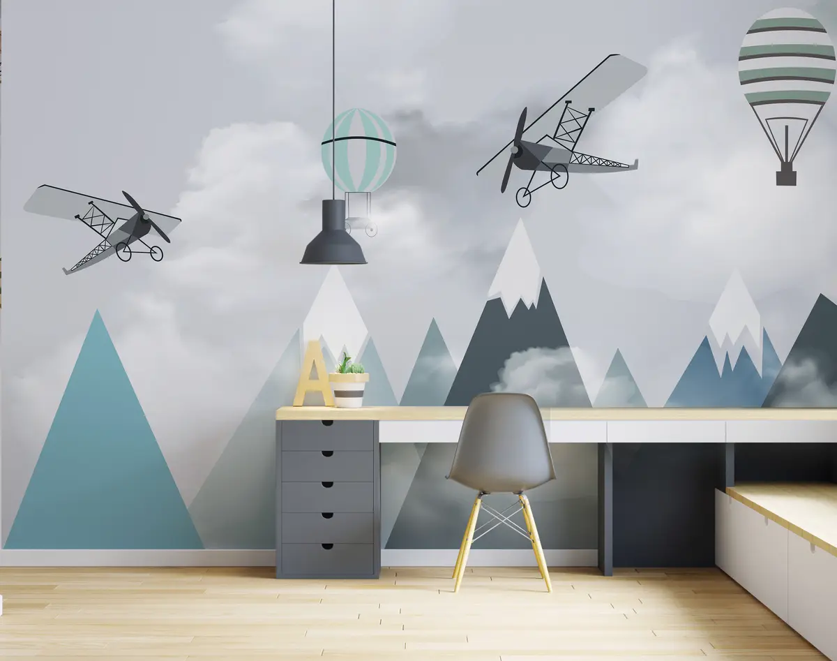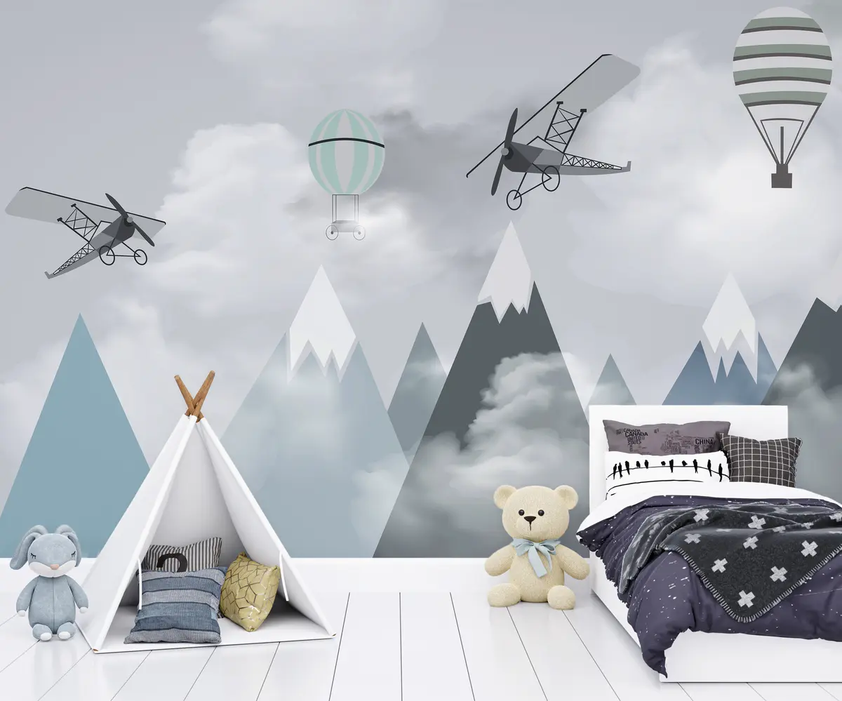 Mountains, planes, balloons - Wall mural (No. u95370)