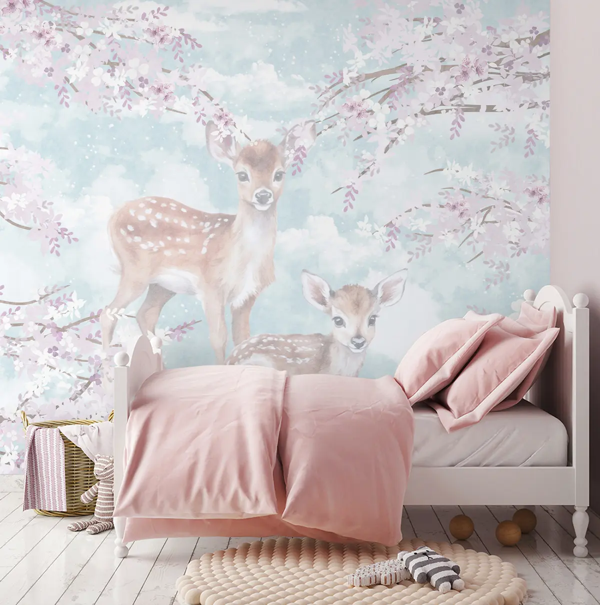 Fawns among flowering trees - Wall mural (No. u97464)