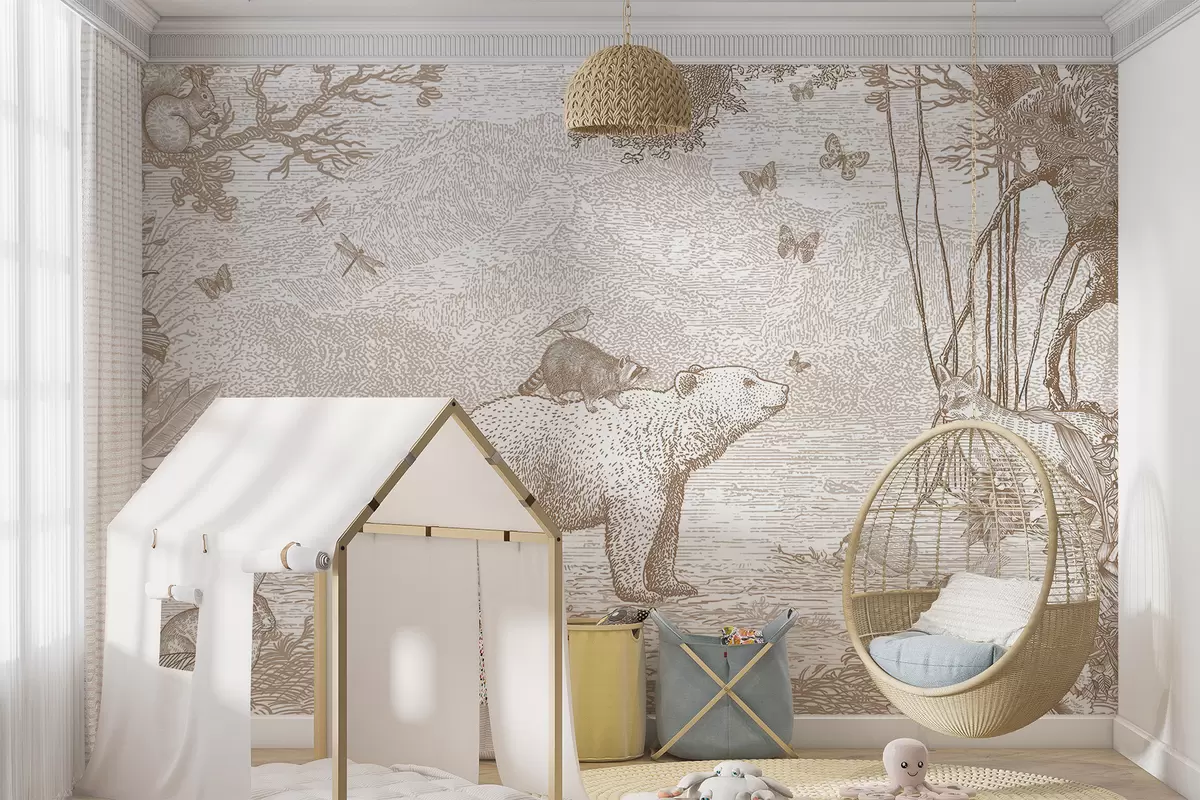 Fairy forest with adorable animals - Wall mural (No. u95425)