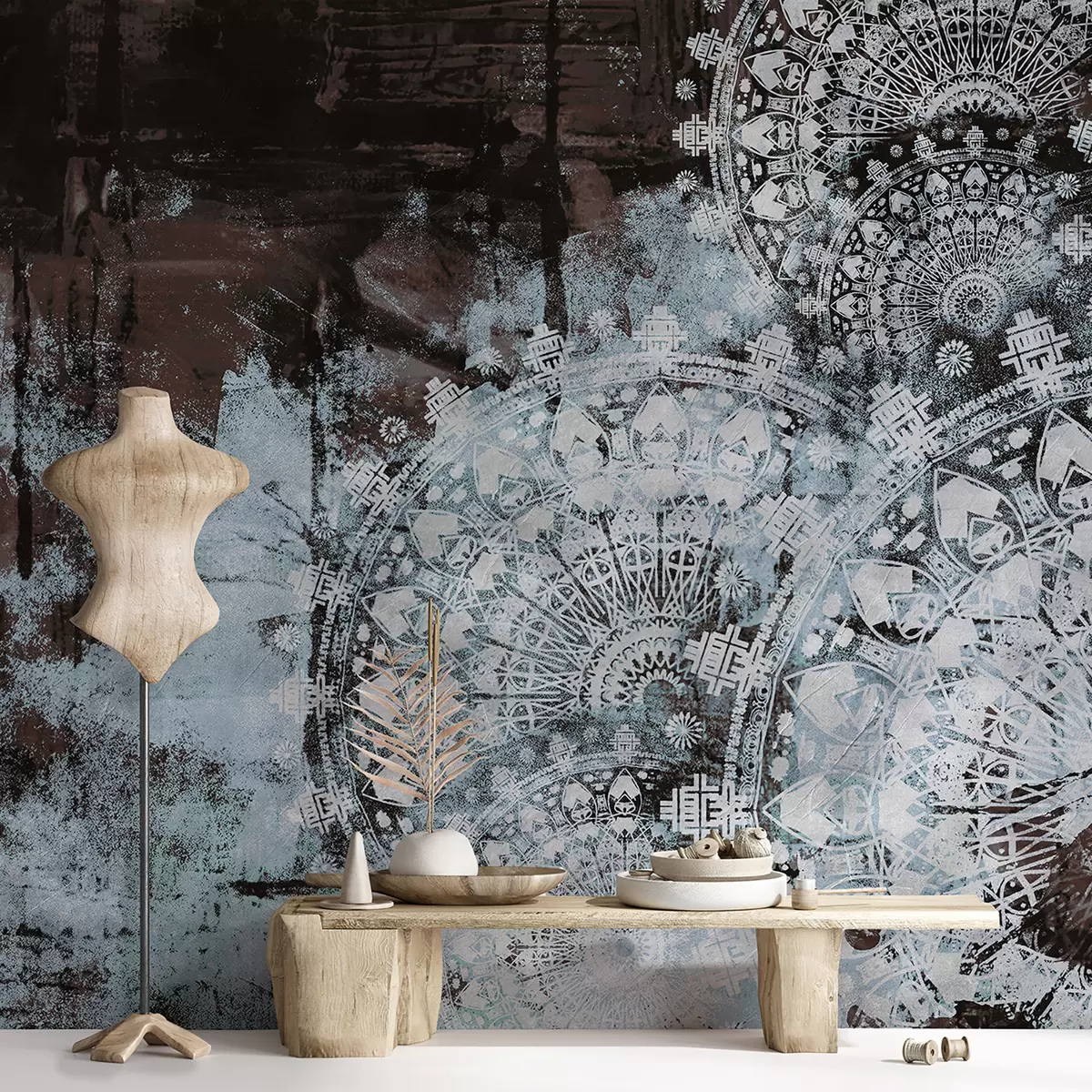 Vintage mandala in blue colors - Wall mural (No. u93958v1)
