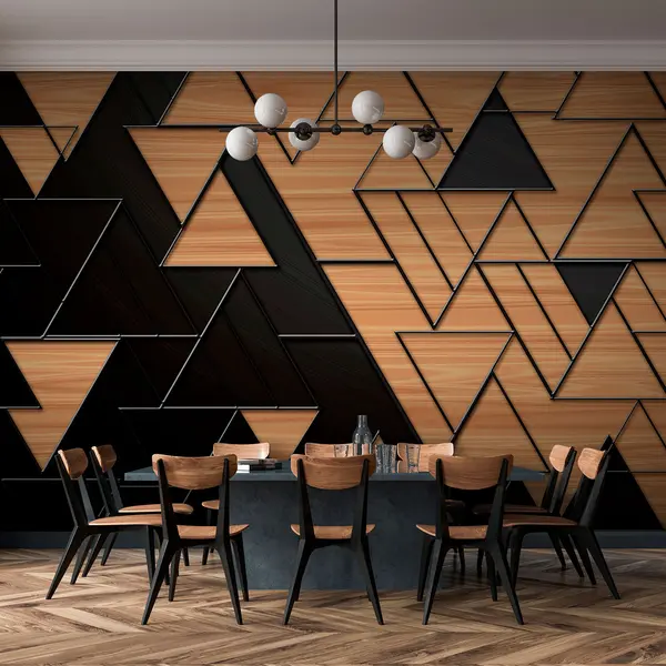 3D dark gray and wood grain triangles with embossed lines - Wall mural (No. u75167)