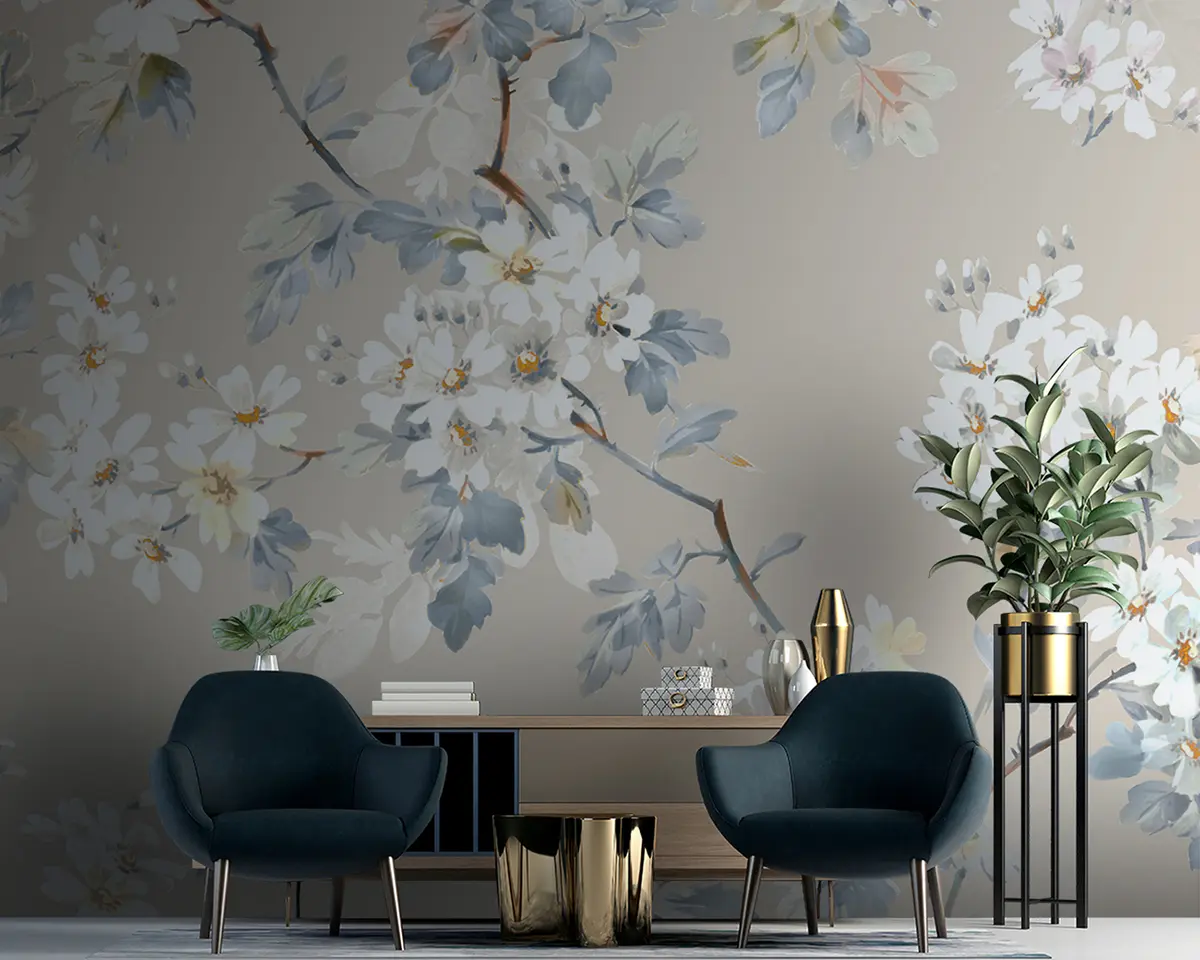 Hand-painted flowers and butterflies with watercolors - Wall mural (No. u97114)