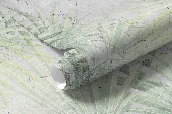 Green palm leaves with grunge texture - Wall mural (No. u94284)