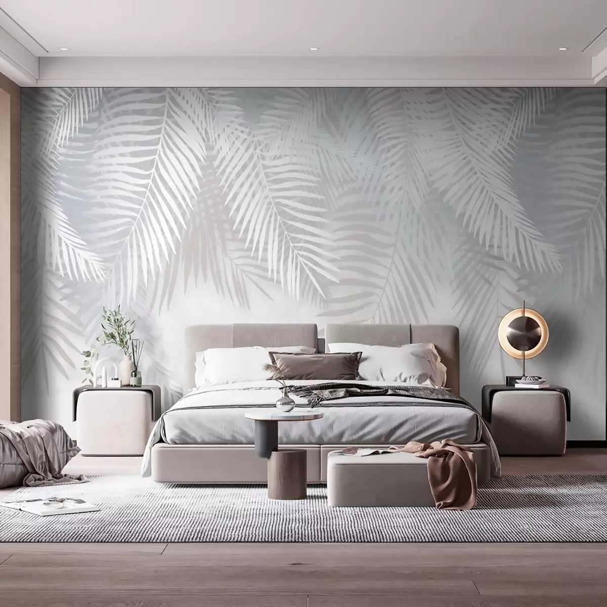White palm leaves on grunge texture - Wall mural (No. u94457)