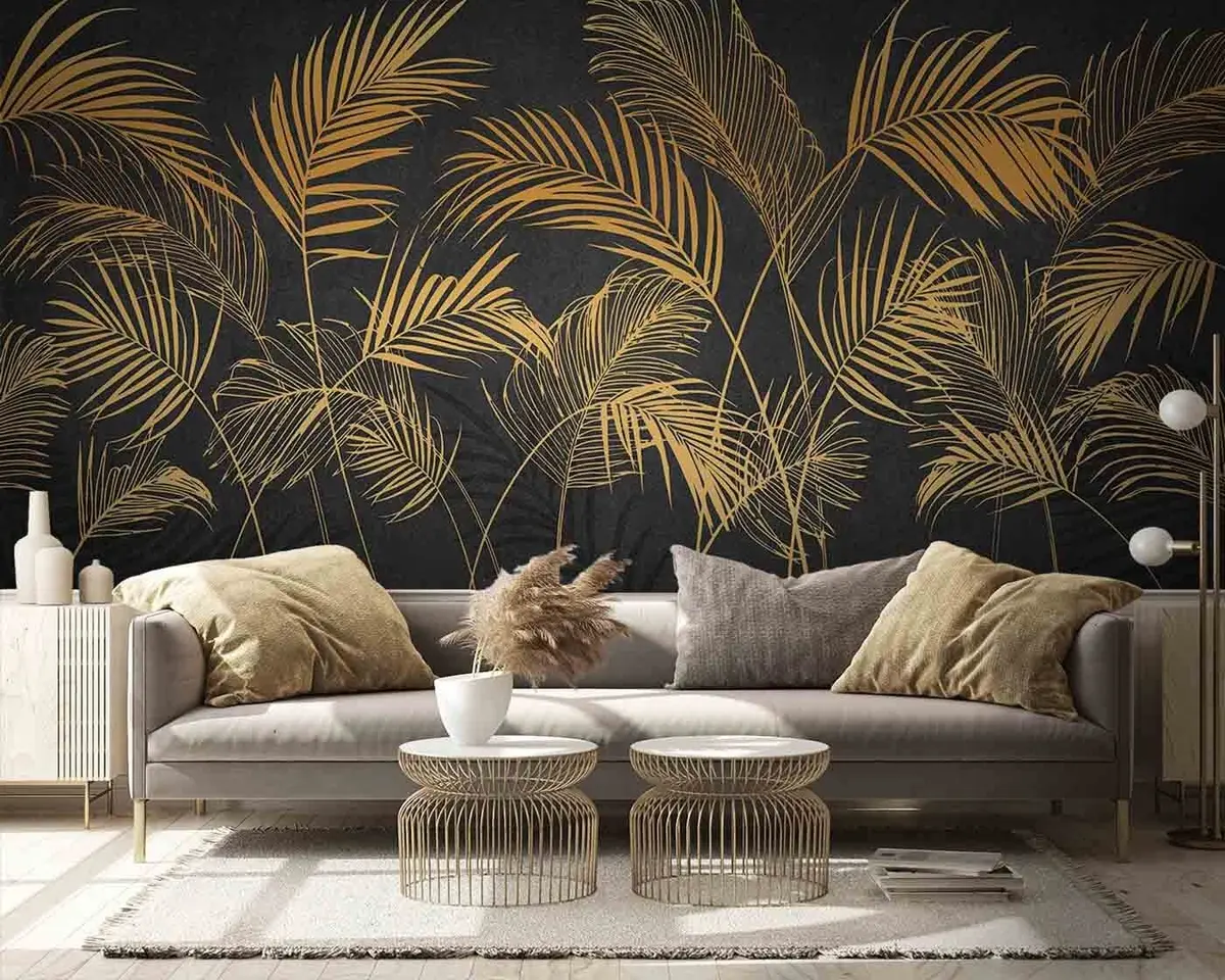 Palm leaves with concrete wall - Wall mural (No. u96317)