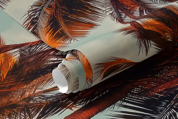 Sunset on the beach, large palm trees - Wall mural (No. u97883)
