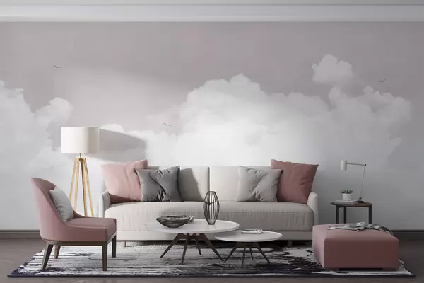 Vintage clouds in the sky in pink - Wall mural (No. u96783v1)