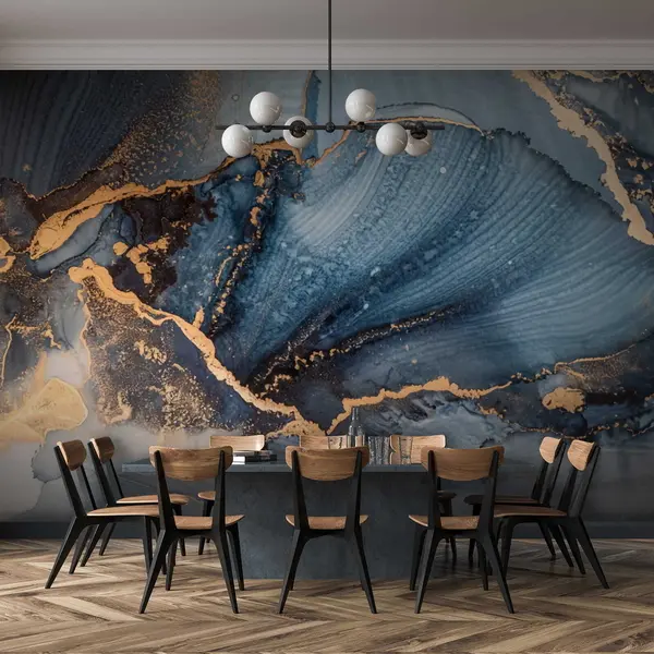 Blue abstract art, marble, fluid - Wall mural (No. u70781)