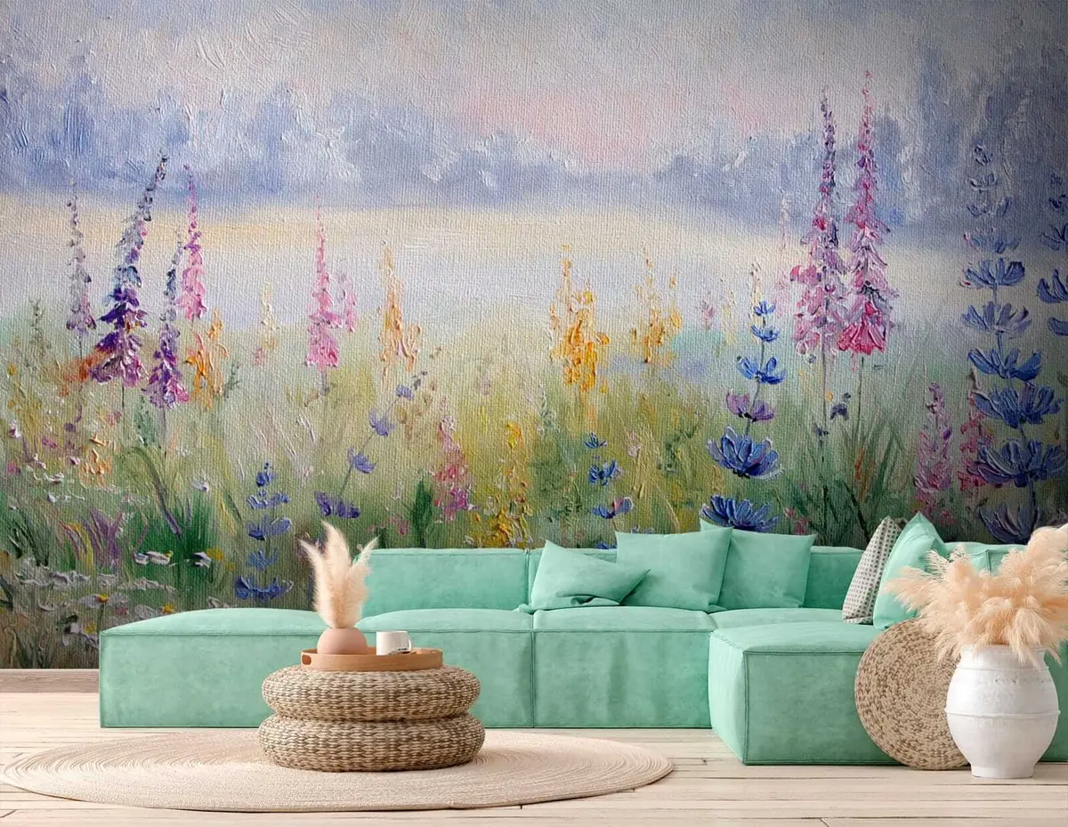 Flower meadow, oil painting - Wall mural (No. u30067)