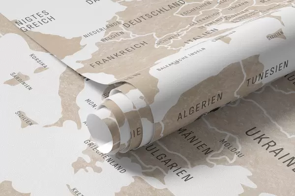 Children's map in watercolour style with animals and hot air balloons. German language. Beige colour. - Wall mural (No. c00001dev2)