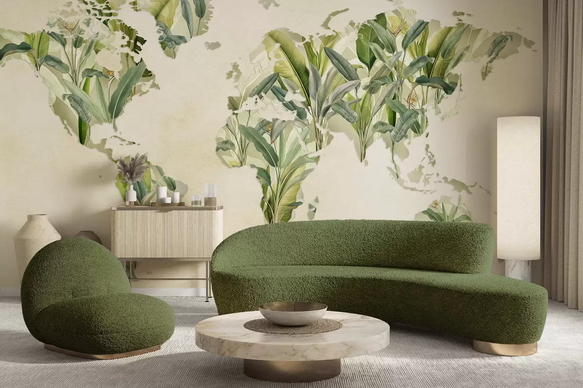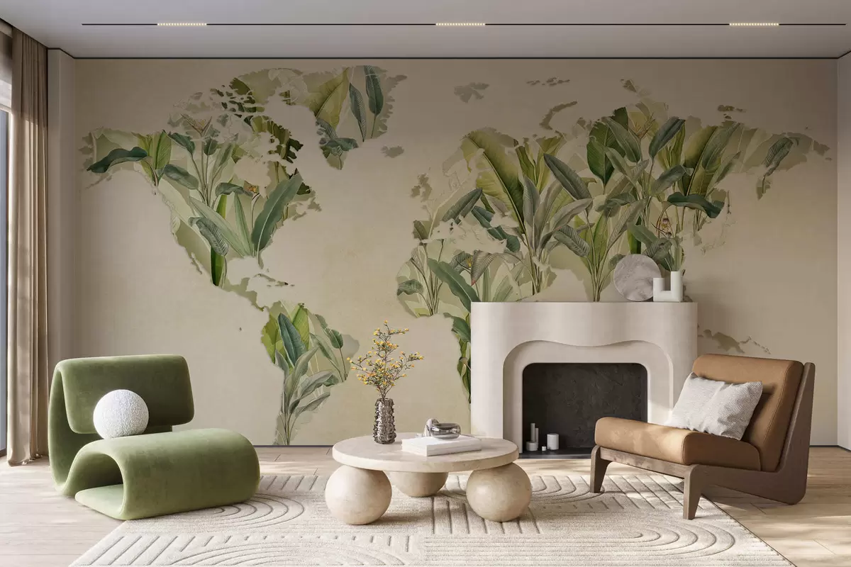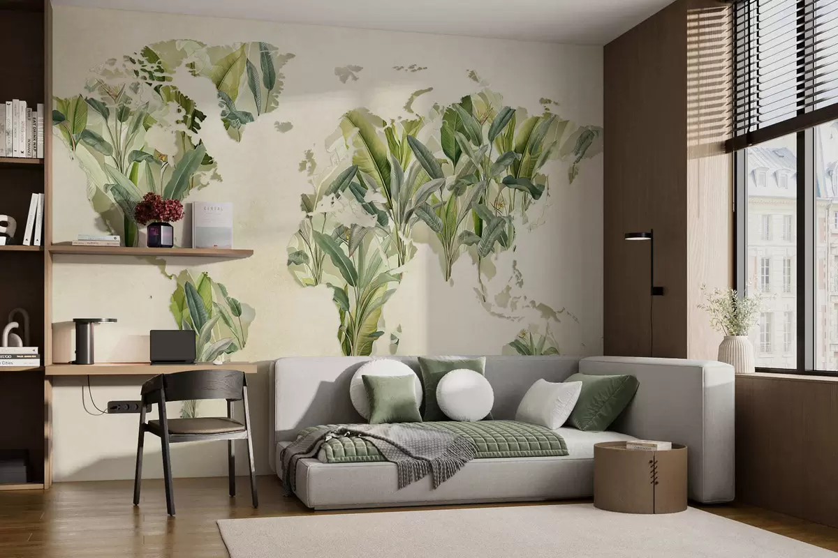 A green map of the world made from banana leaves - Wall mural (No. c00007)