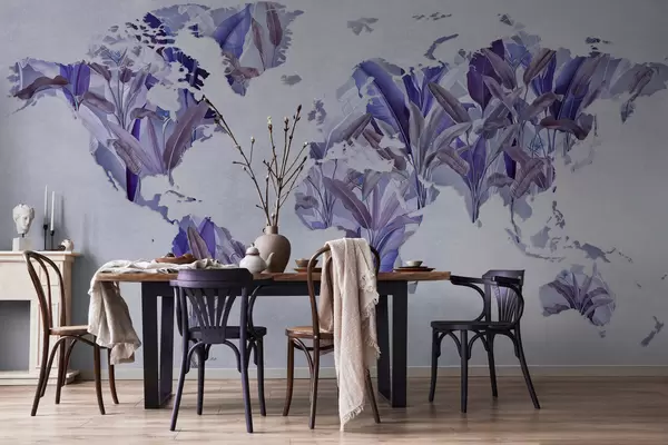 A purple map of the world made from banana leaves - Wall mural (No. c00007v1)