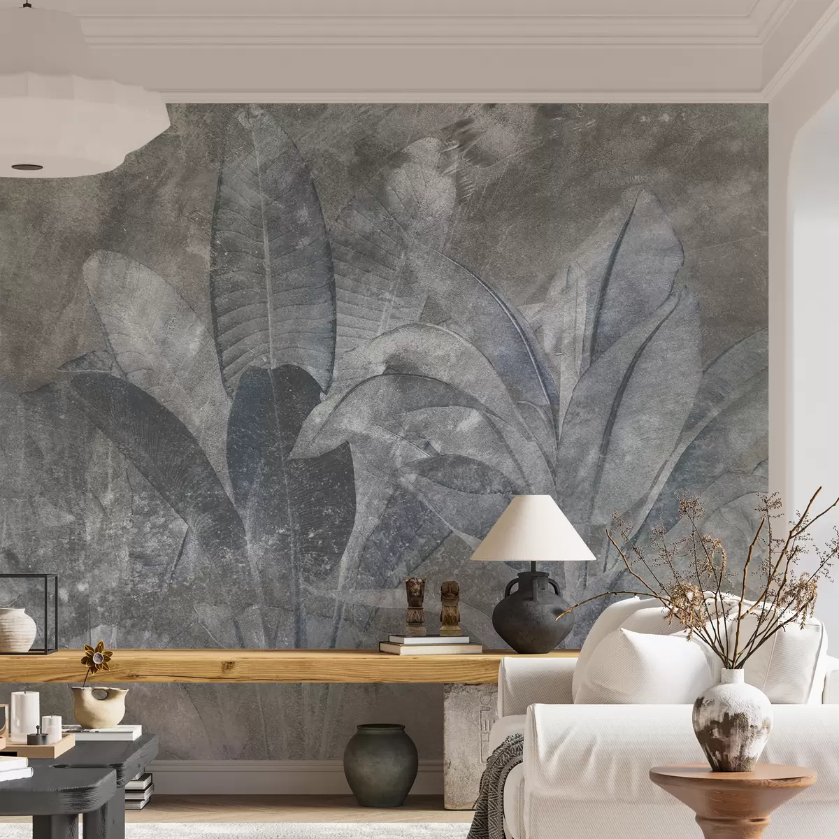 Banana leaves on a stone background - Wall mural (No. u73884v3)