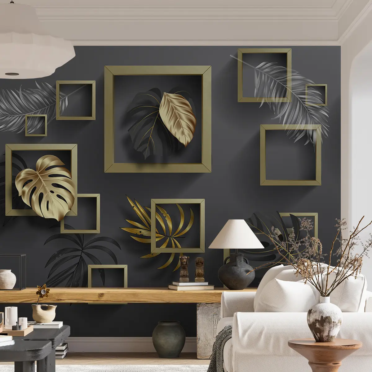 Leaves in frames - Wall mural (No. u77858d2)