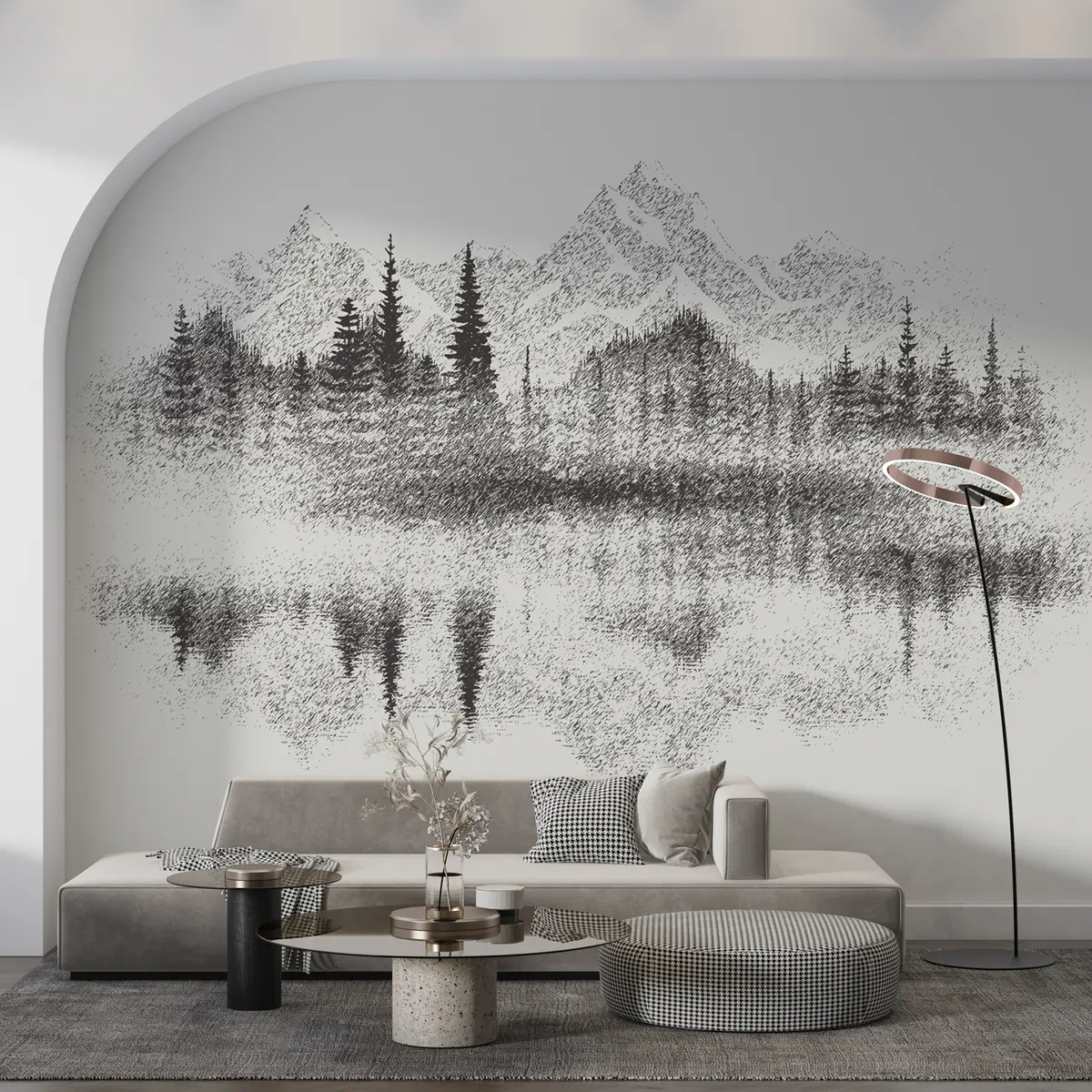 The forest and mountains are reflected in the lake - Wall mural (No. u98808)