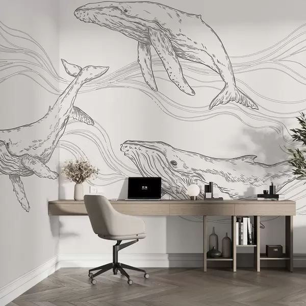 Graceful whales swimming through waves - Wall mural (No. u99733)