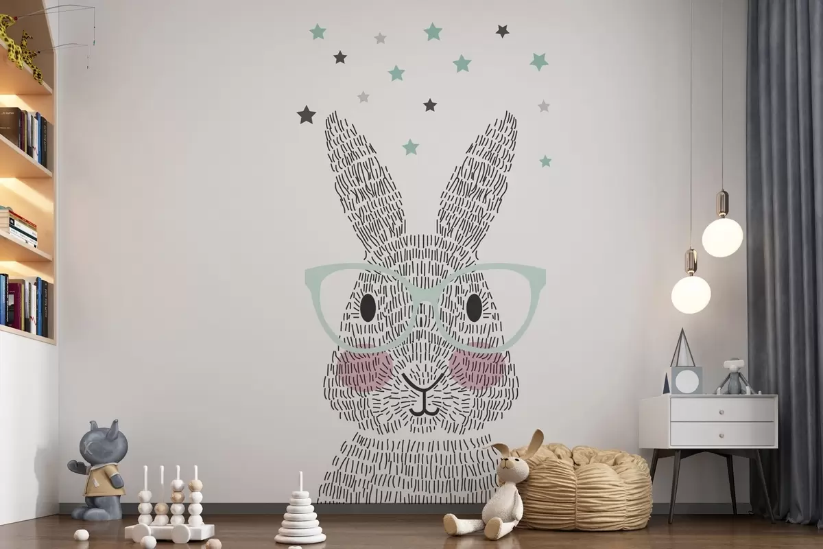 Smart bunny with stylish glasses - Wall mural (No. w00159)