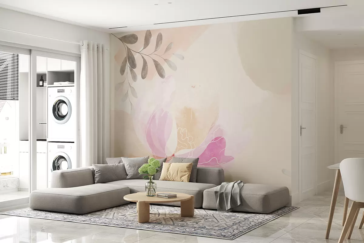 big flower, pastel, watercolor, beige color - Wall mural (No. w00396)