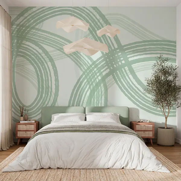 Abstract lines boho style green color - Wall mural (No. w00417v2)