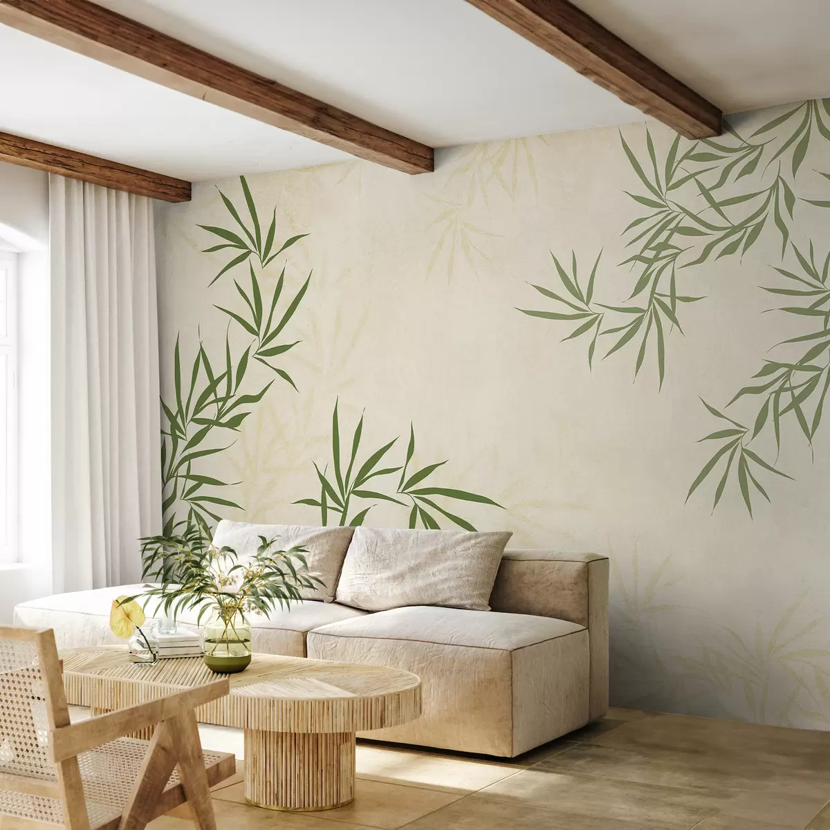 Plant twigs, bamboo, vintage style, texture background, yellow, green color - Wall mural (No. w00817)
