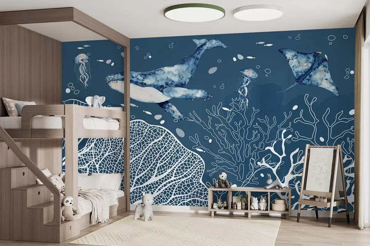Underwater wonders in serene blues - Wall mural (No. w00848v1)