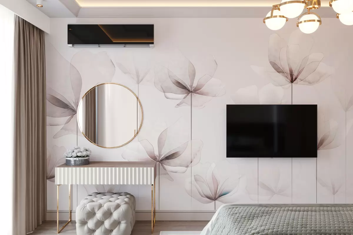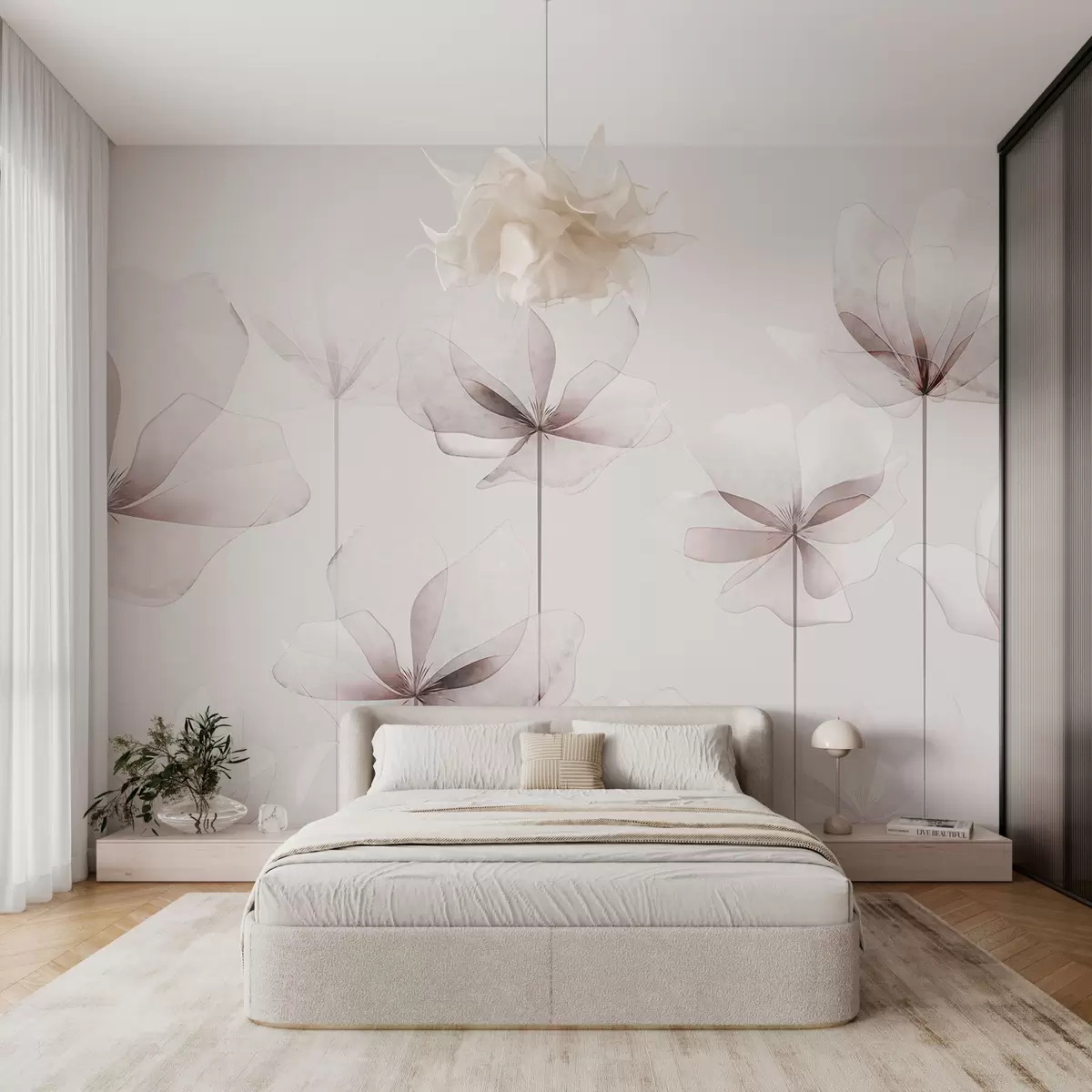 Gentle transparent flowers 3D art deco modern style trend - Wall mural (No. w00895)