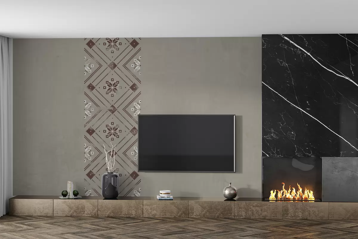 Patriotic textured wallpaper with minimalist Ukrainian-style ornament in brown shades - Wall mural (No. w01027v1)