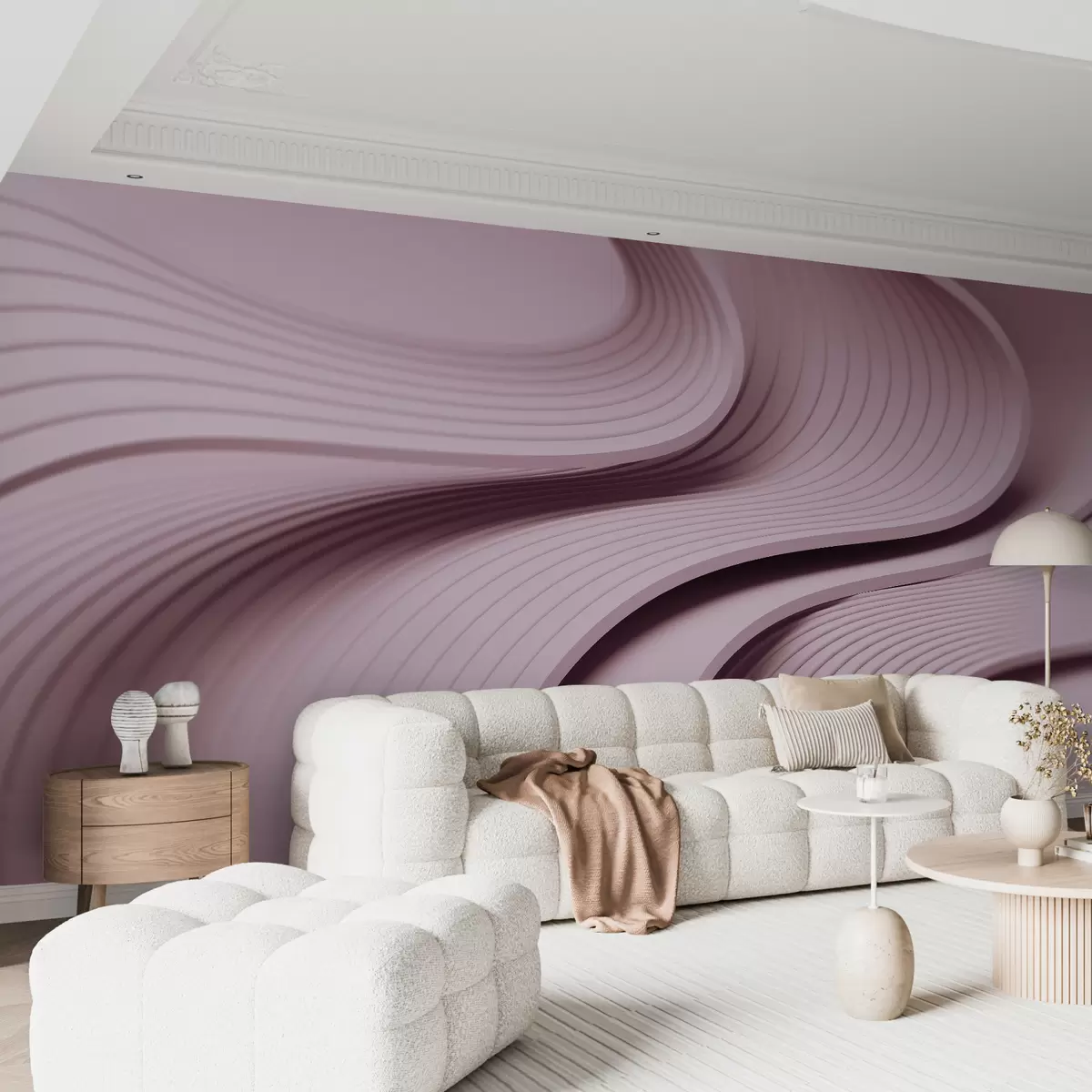 Elegant voluminous waves in 3D style in powder shades - Wall mural (No. w01147v1)