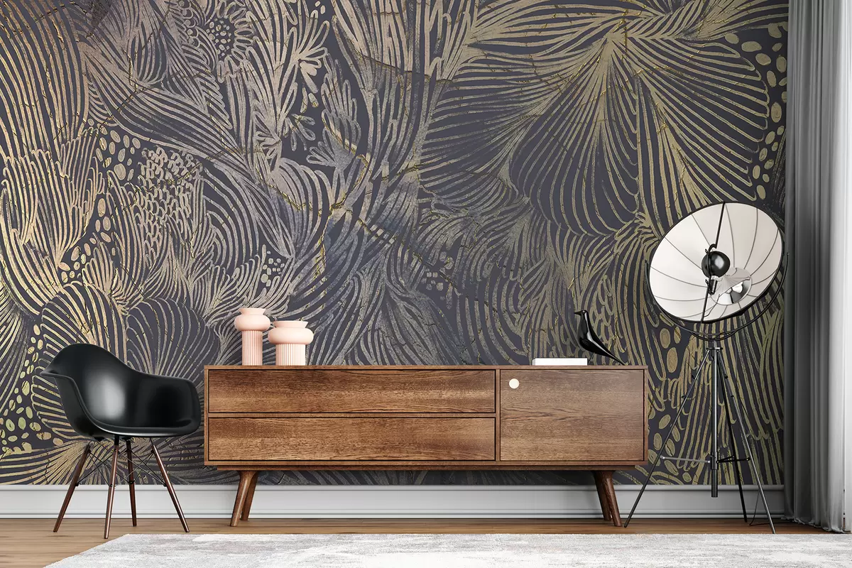 Abstract textured luxury print with overlapping organic shapes and lines - Wall mural (No. w01243)